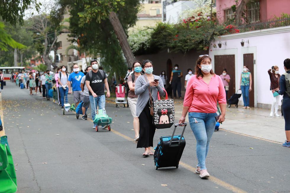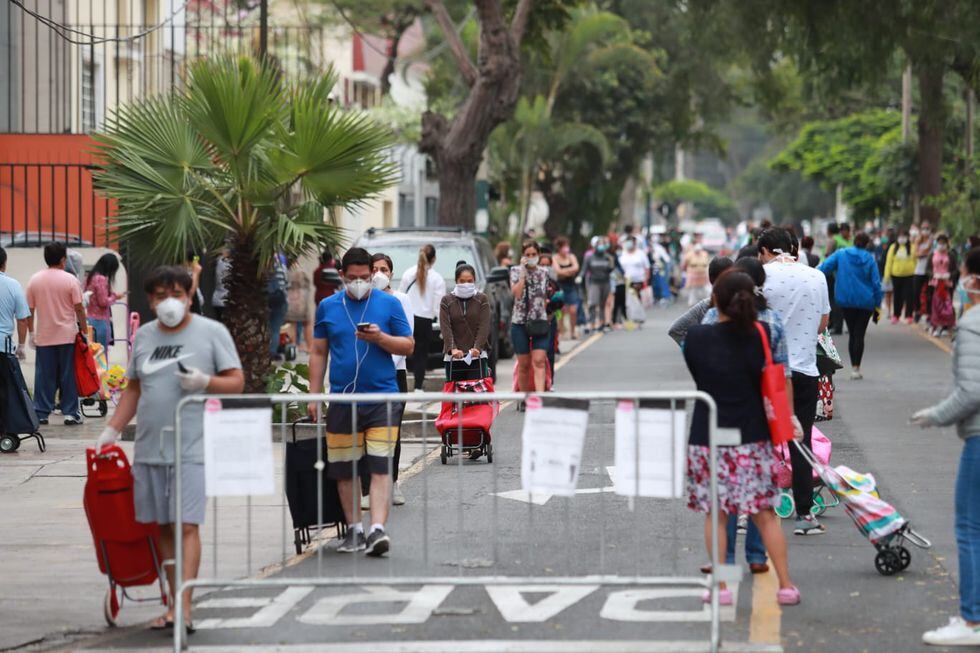 Luego que el Gobierno dispuso ahora que solo una persona por familia puede salir para adquirir víveres, medicinas o realizar trámites bancarios, de lunes a sábado, durante la emergencia nacional establecida debido al coronavirus (COVID-19), cientos de ciudadanos hacen largas colas en los diferentes mercados y supermercados de Lima.