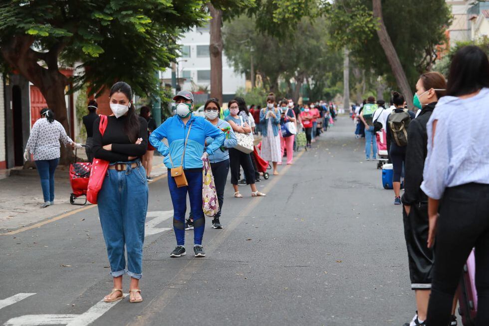 También se observan largas colas de varones y mujeres en el mercado Unicachi del distrito de Villa el Salvador.